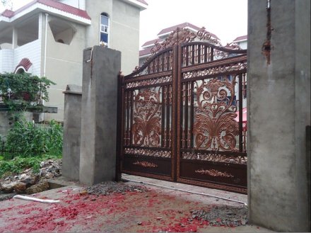 不要經(jīng)常用有水漬(或其他溶液)的手打開(kāi)門鎖,以免其變色。在打開(kāi)或轉(zhuǎn)動(dòng)門鎖把手時(shí),不要用力過(guò)猛,這樣會(huì)降低門鎖的使用壽命。合頁(yè)、門鎖等常用五金,一旦松動(dòng),應(yīng)立即擰緊.當(dāng)門鎖打開(kāi)不正常時(shí),可在鎖孔內(nèi)加入適量的鉛筆沫,切記用食用油等物品潤(rùn)滑。, 漆面出現(xiàn)結(jié)皮或粗?,F(xiàn)象時(shí),應(yīng)采取過(guò)濾措施,以免刷漆后漆膜不平整,堵塞噴槍。, 4、廠家的生產(chǎn)加工工藝:正規(guī)廠家生產(chǎn)的別墅鋁藝大門,其加工比較精細(xì),切線流暢、角度一致,在拼接過(guò)程中應(yīng)該不會(huì)出現(xiàn)較明顯的縫隙,密封性能好,開(kāi)關(guān)順暢。劣質(zhì)的庭院別墅大門,特別是鋁合金室外產(chǎn)品如果加工不合格,會(huì)出現(xiàn)密封性質(zhì)問(wèn)題,不僅漏風(fēng)漏雨,而且在強(qiáng)風(fēng)和大的外力的作用下,玻璃會(huì)出現(xiàn)炸裂、脫落現(xiàn)象,從而給業(yè)主造成損失財(cái)物甚至傷人的現(xiàn)象。, 為保持鋁藝院門的原色,需對(duì)鋁藝院門進(jìn)行兩次以上的磷化處理,在其表面形成一層保護(hù)膜,浸泡數(shù)分鐘,這之后還要經(jīng)過(guò)噴涂保護(hù)漆、230℃烘干、自然冷卻等步驟,才能完成一戶完整的鋁藝院門的表面色彩亮感。生產(chǎn)工藝,除油除銹除氧化-水洗-酸洗-拋光-水洗-中和-水洗-著色處理-洗滌-干燥及其他后處理。, 3、沖孔制作的,安裝比較簡(jiǎn)單;